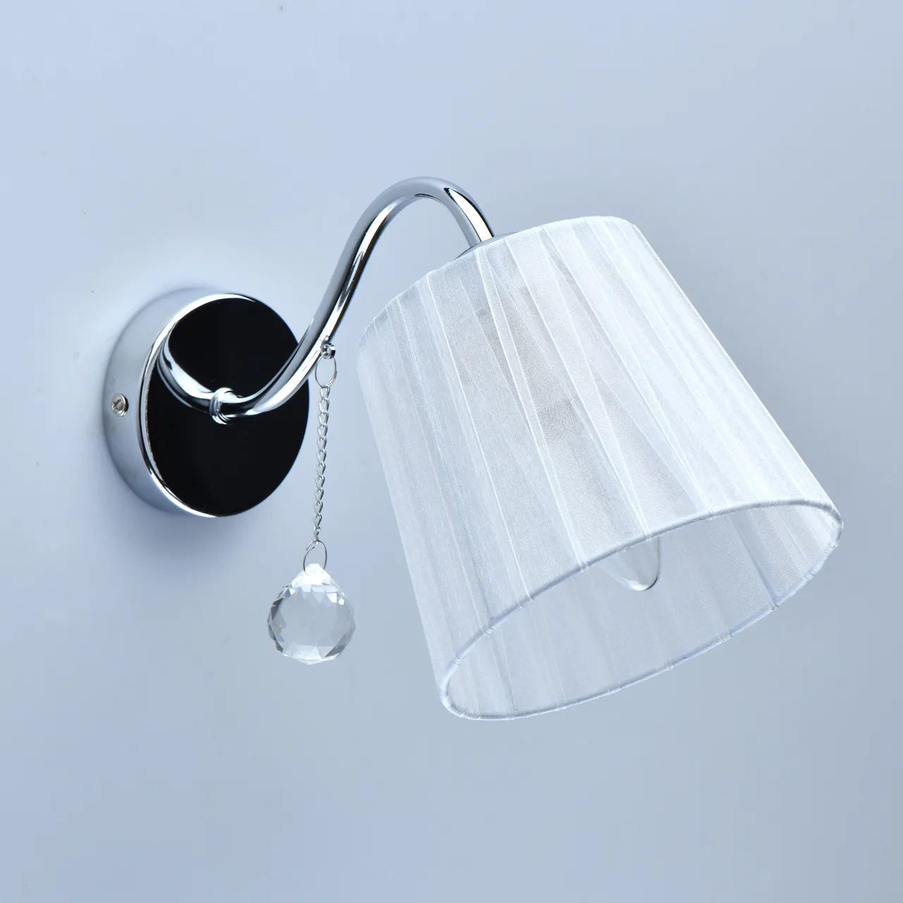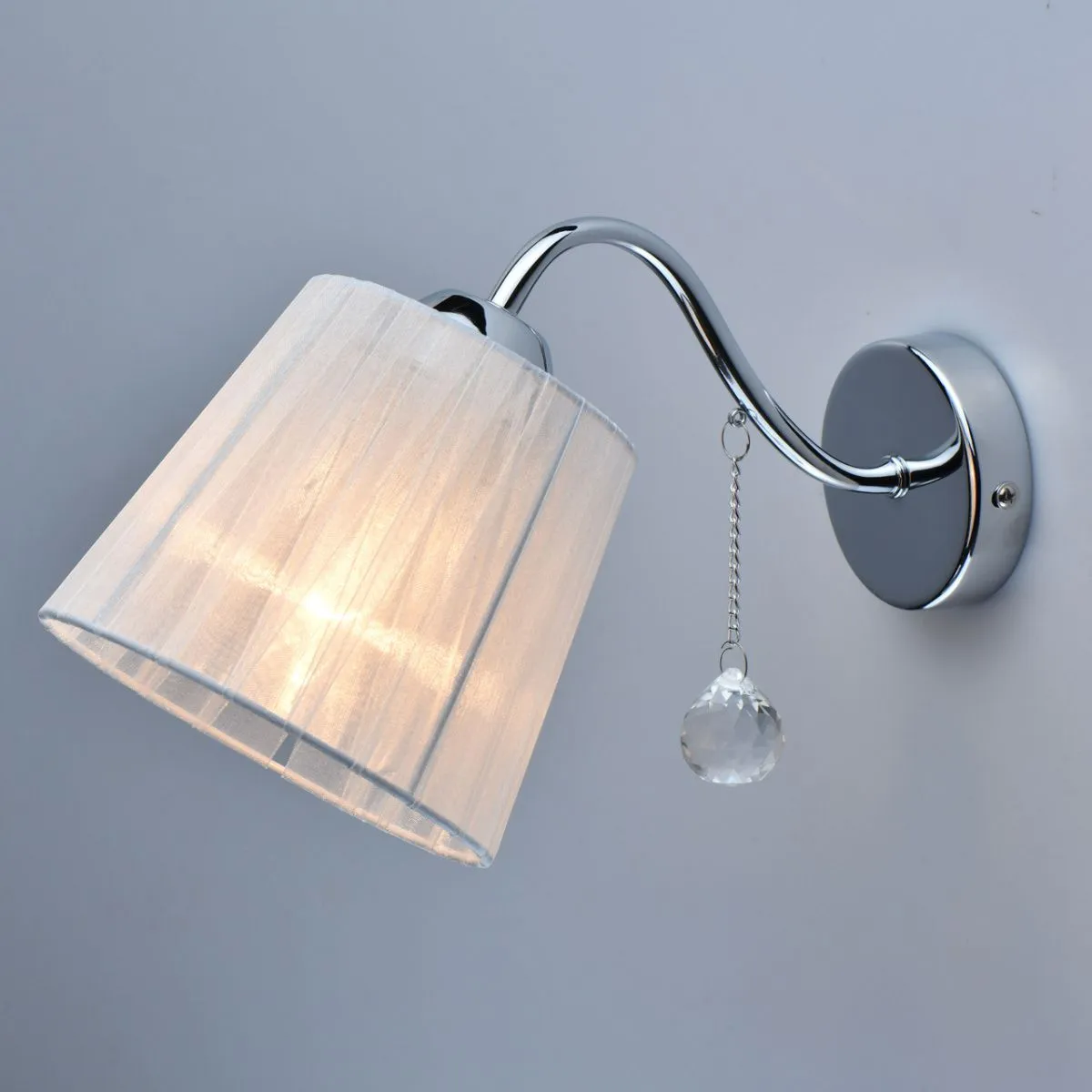 Основание/металл/цвет хрома Абажур/органза/белый Декор/хрусталь/прозрачный