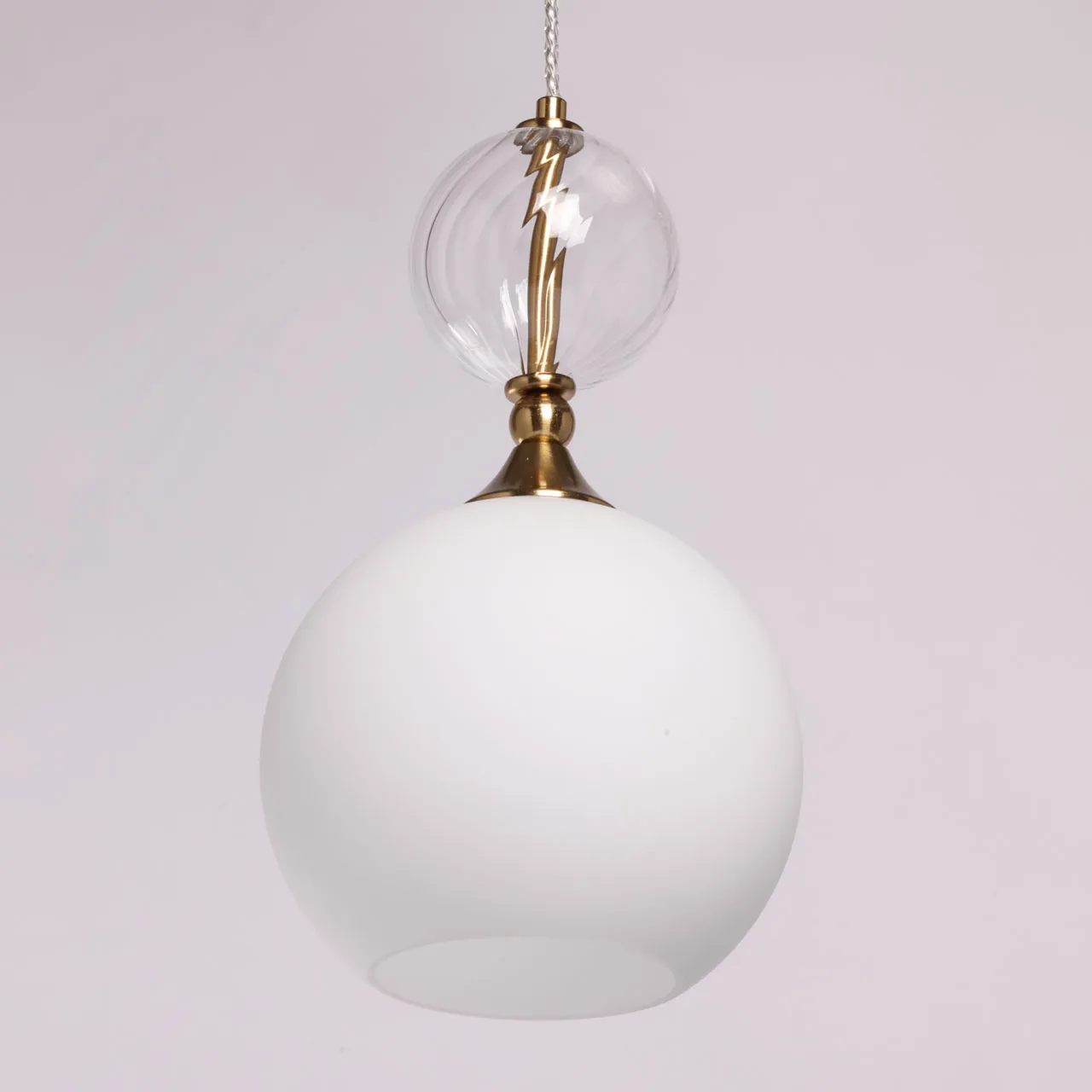 Основание/ металл/латунь Плафон/ стекло/ белое Декор/ стекло/ прозрачное