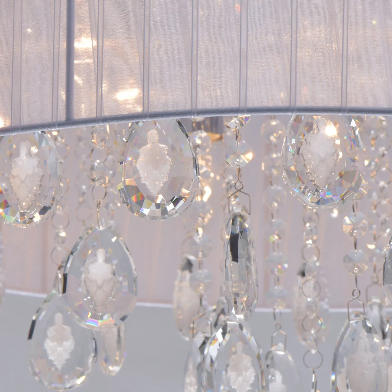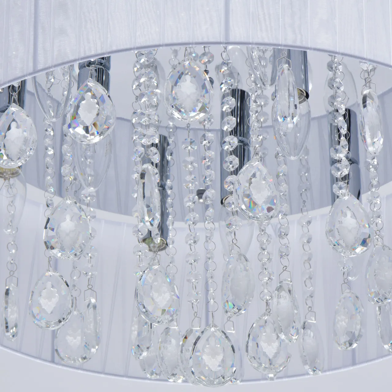 Основание/нержавеющая сталь Плафон/текстиль/белый Декор/хрусталь с резным белым орнаментом