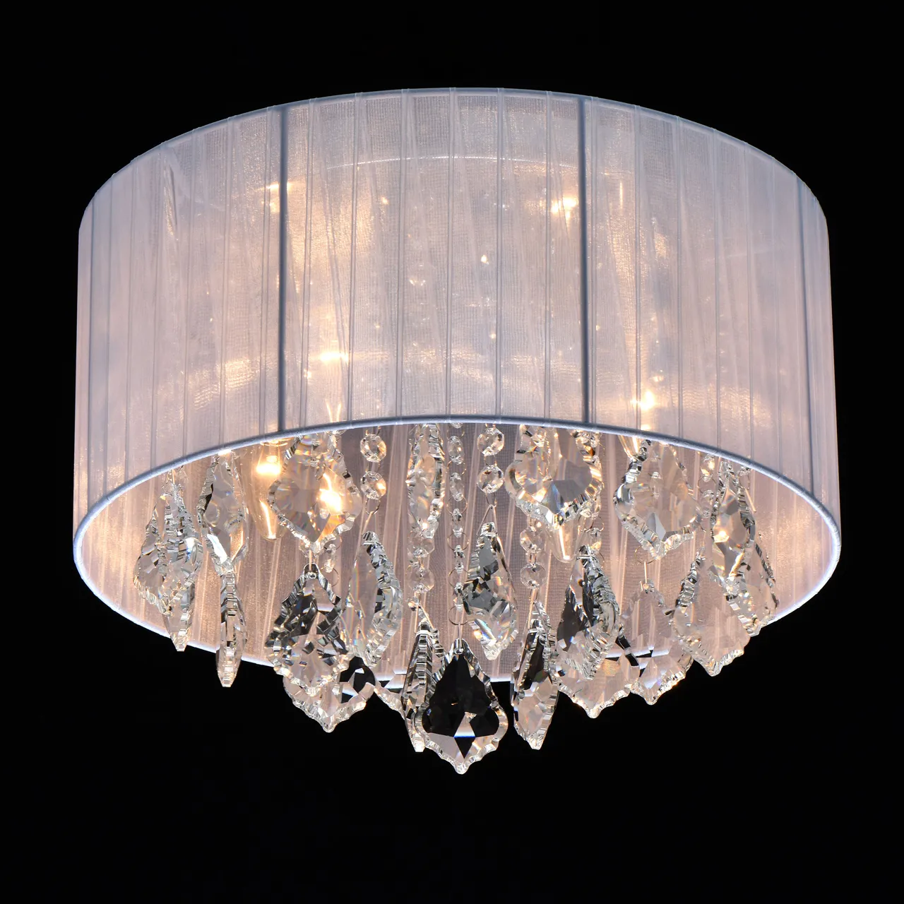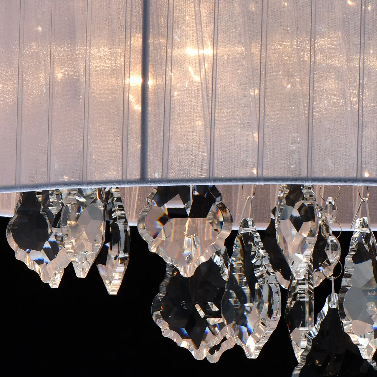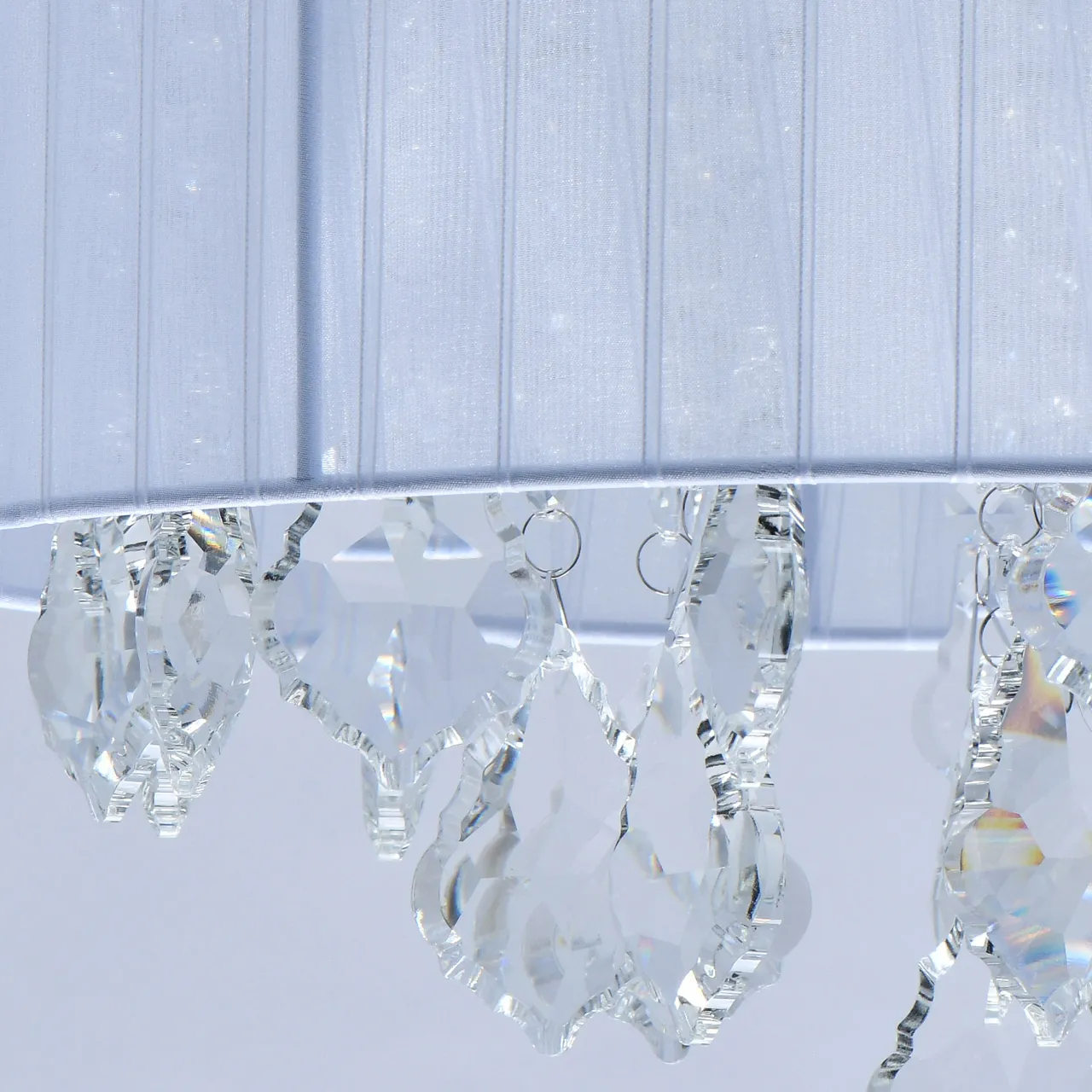 Основание/металл/хром Плафон/органза/белый Декор/хрусталь/прозрачный