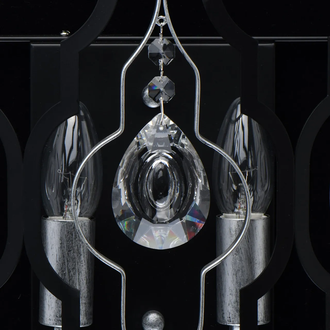 Основание/металл/черный и серебро. Декор/прозрачный хрусталь
