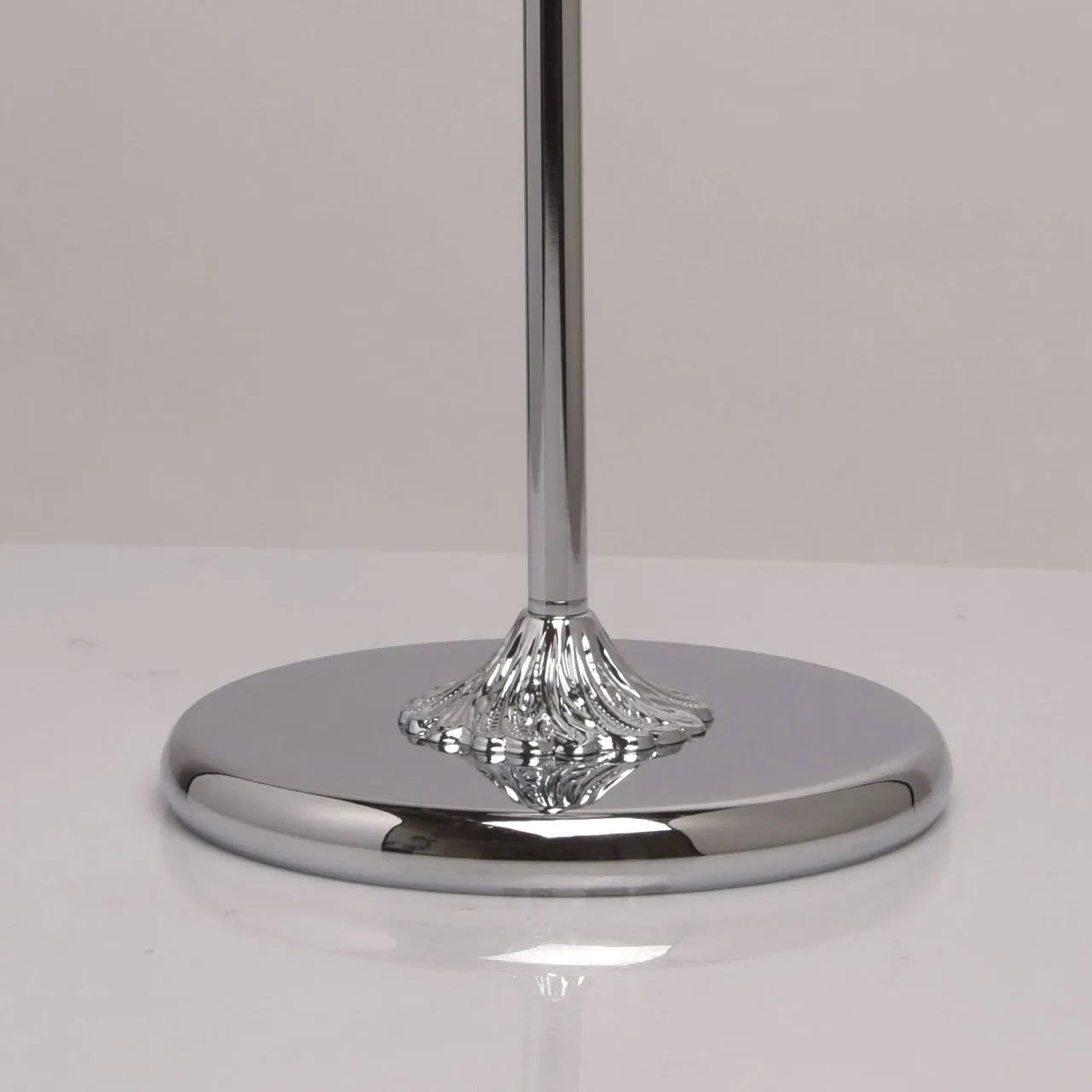Металлическое основание цвета хрома.Абажур: текстиль. Декор:массив хрусталя
